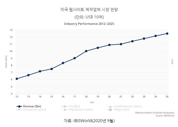 미국의 웹사이트 제작 산업 규모는 2025년 124억달러까지 성장할 전망입니다.